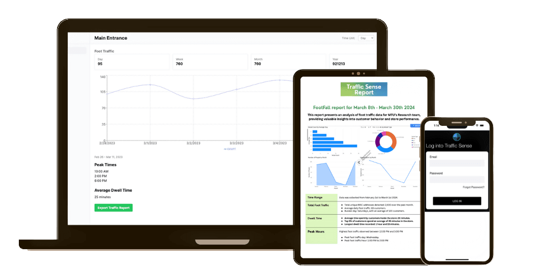 We use Traffic Sense a simple sensor which helps us keep track of how long our customers are waiting. It was created by Urban Tech Developers